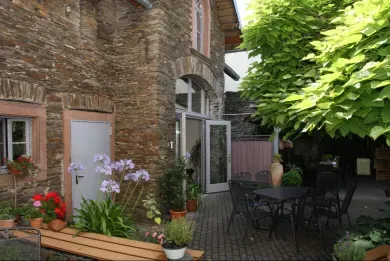 In unserem traditionellen Winzerhaus befinden sich großzügige Ferienwohnungen, die mit Blick auf die Schiefersteillage im Dhroner Hofberg verwöhnen.