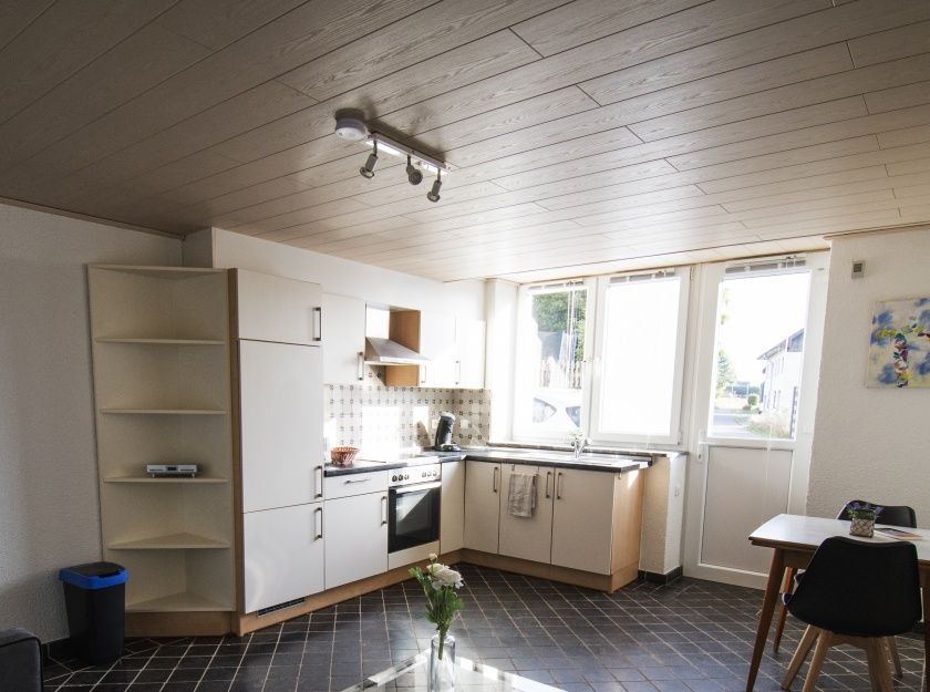 Unsere ca. 50 m2 große Ferienwohnung ist eine Einliegerwohnung mit einer großen Wohn-Ess-Küche, einem Schlafzimmer und einem Badezimmer. Die Wohnung befindet sich seitlich des Haupthauses und ist ruhig gelegen. Der zugehörige Autostellplatz befindet sich direkt vor der Tür. Sie ist barrierefrei zugänglich.
