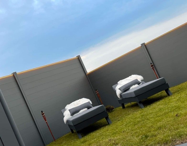 - Den überdachten Außenbereich ziert eine gemütliche Sitzecke mit Gartenmöbeln, wo Sie im Sommer leckere Mahlzeiten zu Zweit genießen oder sich auf den Sonnenliegen entspannen können.