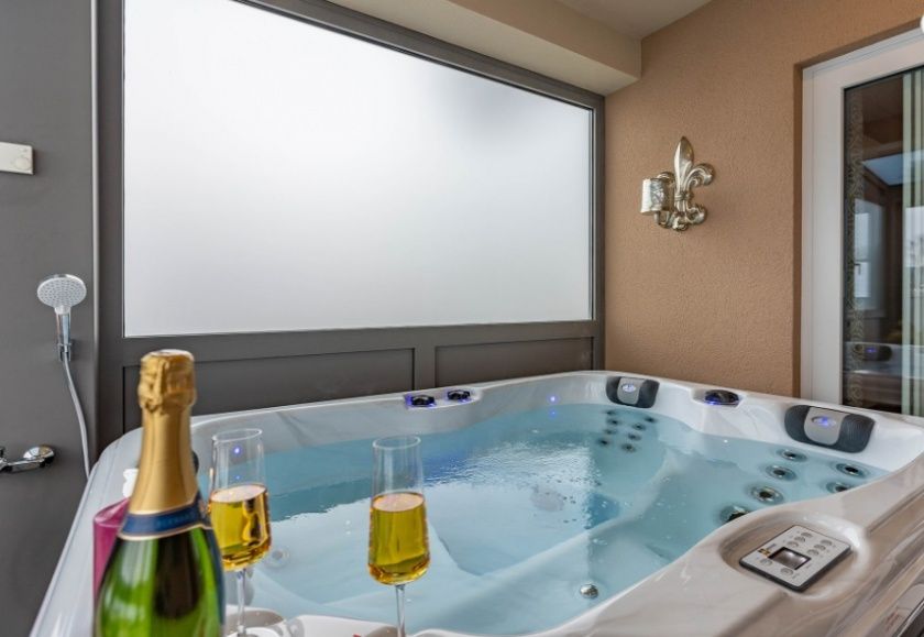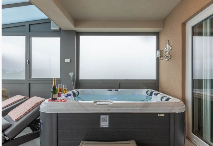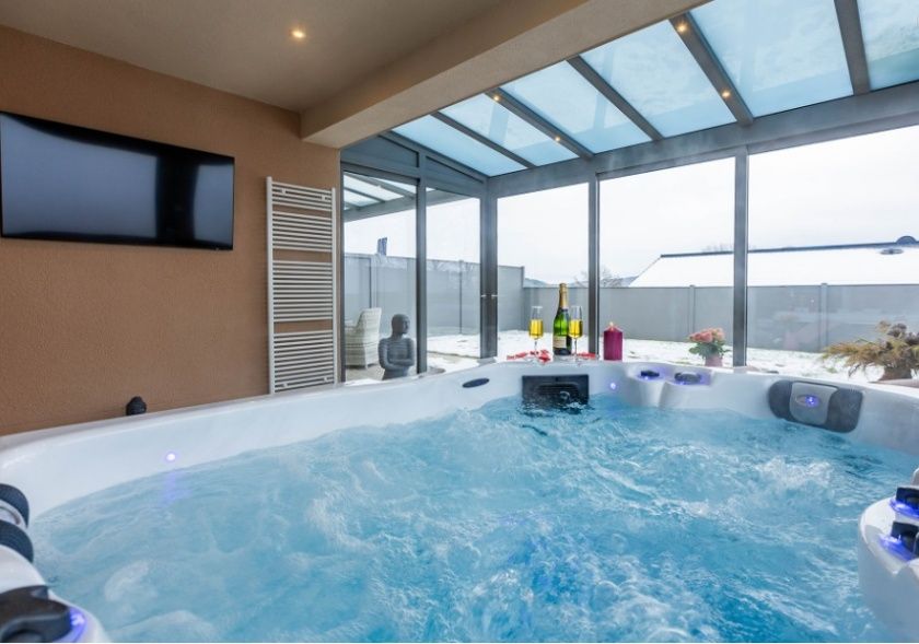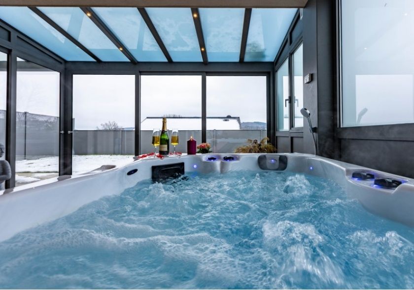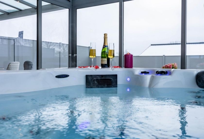 Bringen Sie Körper und Geist in Einklang und tauchen Sie ab in die wohlige Wärme und das prickelnde Erleben unseres exklusiven Whirlpools. Im Bereich des Wintergartens mit Blick auf den angrenzenden Garten oder den Fernseher, bietet unser Whirlpool Ihnen alles, um durch eine kleine Auszeit ausgeglichen und erholt durchzustarten.