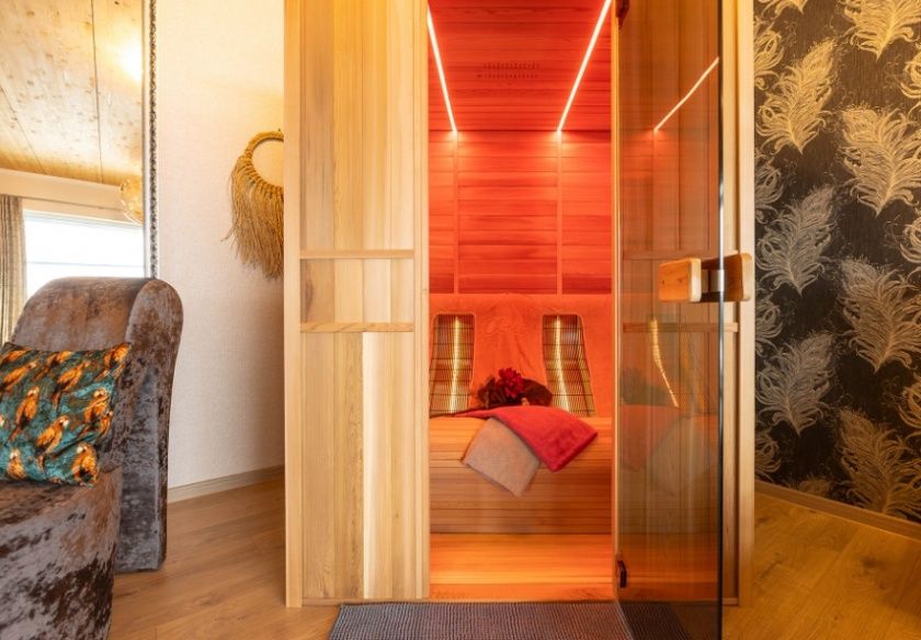 Eine Oase der Ruhe bietet unsere Infrarotsauna. Mit digitaler Steuerung können Sie sich ganz individuell die Temperatur genau nach Ihren Vorlieben einstellen. Die unnachahmlich wohltuende Wirkung eines Saunagangs ist ein unverzichtbarer Teil Ihres Wellness-Urlaubs in unserem Perlenspiel.