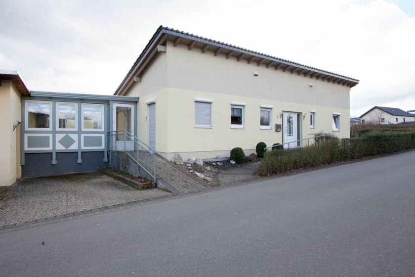 Der Eingangs Bereich ist mit einer Rampe zur Haustüre und einer Rampe zum Wintergarten ausgestattet. Vom Wintergarten kommt man in den Garten des Ferienhauses mit Sitzgelegenheit.