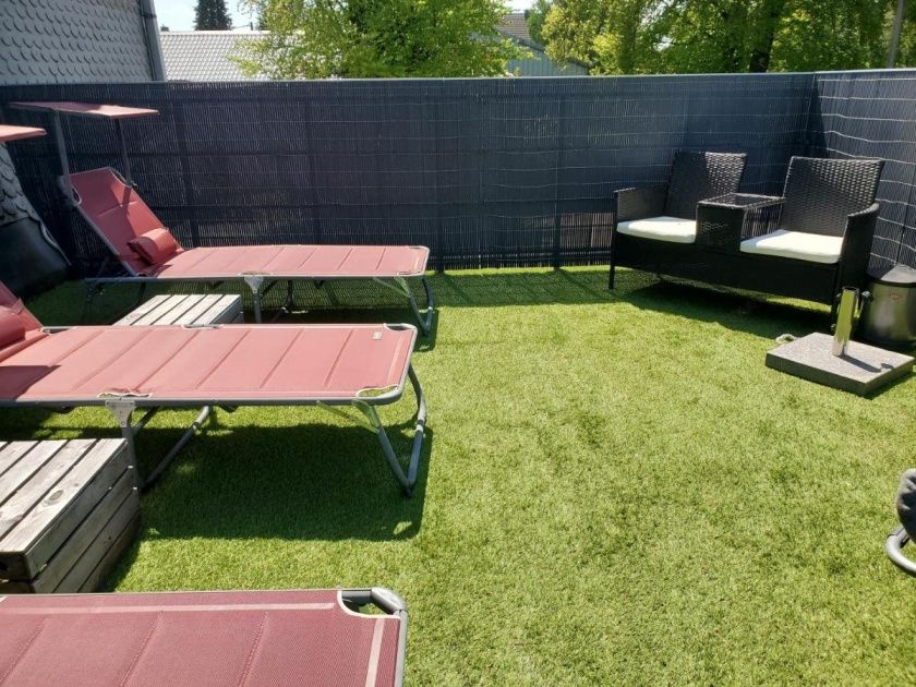 • Ein kleiner gemütlicher Garten mit Gartenmöbel, Grill und Sonnenliegen steht unseren Gästen ebenfalls zur Verfügung und befindet sich teilweise hinter dem Haus und teilweise neben der Garage.
