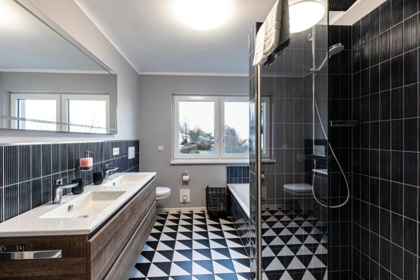Das Haus besteht aus 4 Schlafzimmern, einer großzügigen Küche mit einer Kochinsel, die mit dem Essraum verbunden ist sowie einem großen Wohnzimmer, Wellnessbereich mit einer Infrarot-Wärmekabine, Garage, Abstellkammer und Bügelraum, 3 Bäder, 2 Balkone mit der schönen Aussicht über den Hunsrück und einer geschützten Außenterrasse mit dem Grillplatz.