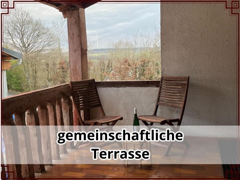 Genieße die frische Luft und den Panoramablick auf der gemeinschaftlichen Terrasse.
