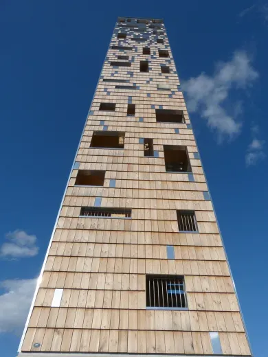 Dieser Aussichtsturm wurde in einer einzigartigen Holzkonstruktion als Wahrzeichen des Himmelsgartens zur Landesgartenschau 2014 in Schwäbisch Gmünd errichtet.