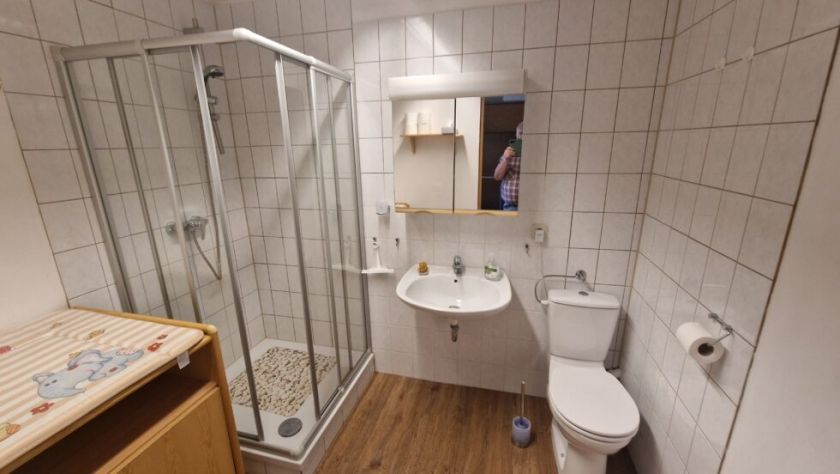 - Zusätzliches Duschbad mit WC / Waschbecken neben dem Fahrradabstellraum.