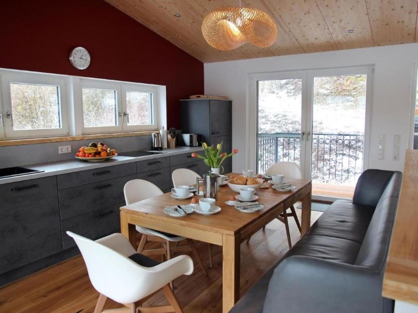 • Die Küche ist riesig und bietet Dir mit Spülmaschine, Induktionsherd, Backofen, Kühlschrank mit extra Tiefkühlabteil alles, was das Herz begehrt. Am ausziehbaren Esstisch mit seiner bequemen Ledersitzbank finden bis zu 12 Personen Platz.