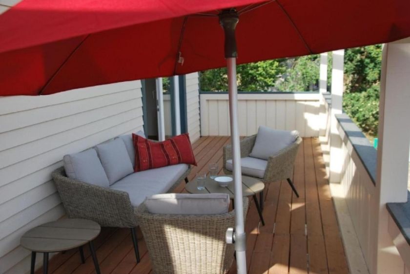 So wichtig wie das Drinnen, ist natürlich auch der Außenbereich. Du kannst auf den verschiedenen, teils überdachten Terrassen und Balkonen im Erd- und Obergeschoss mühelos auch einmal einen ganzen Tag nur um’s Haus wandern und immer wieder neue Lieblingsplätze finden. Im Sommer ist mein Lieblingsplatz die Terrasse auf der Nordseite in der Abendsonne, mit dem Blick ins Naturschutzgebiet. Im Winter lässt es sich auf der geschützten und vollständig mit Glas überdachten Südterrasse besonders gut verweilen.
