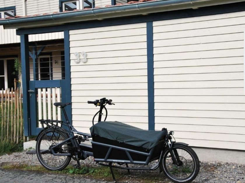 • Für Fahrräder steht Dir ein eigener, geschützter und überdachter Fahrradschuppen mit Lademöglichkeit zur Verfügung. Falls Du kein eigenes Fahrrad mitbringst, kannst Du Dir, je nach Verfügbarkeit, gegen Gebühr ein E-Bike oder ein Lasten-E-Bike mit Kindersitzen mieten.