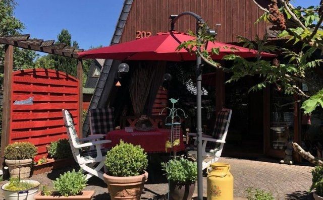 Das Eifelhäuschen, Haus 202 ist mit 65 m² bis zu 4 Personen und bis zu 5 Hunde ausgelegt und bietet neben einer komplett eingerichteten Küche, ein Bad mit Dusche, ein Wohnzimmer mit Essecke und Kinderstuhl, zwei Schlafzimmer, W-LAN-Radio sowie Internet-SAT-TV.