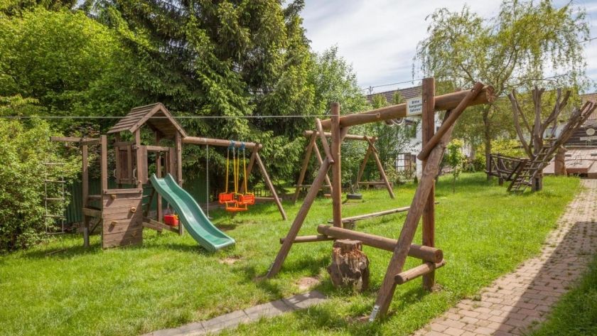 - Große Sonnenterrasse und Außenanlage mit Spielmöglichkeiten für Kinder