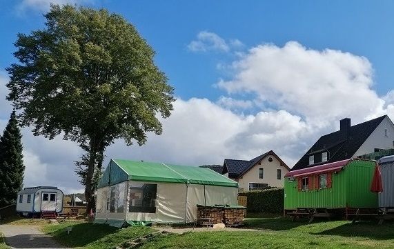 - 10 originell eingerichtete Bauwagen (35 Betten+6 mögliche Zustellbetten) und komplett ausgestattetem Küchenzelt mit Holzfussboden (6x8m)