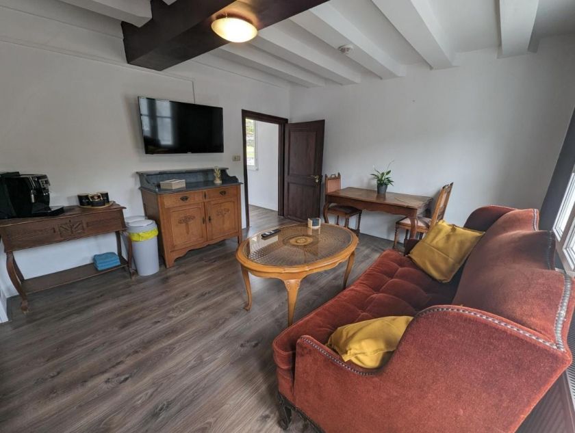 Das Apartment Frühling befindet sich im Erdgeschoss des Hauses und ist daher gut für Gäste mit eingeschränkter Mobilität geeignet. Trotz der Hanglage bietet das Wohnzimmer einen herrlichen Blick über die Dächer von Monschau.