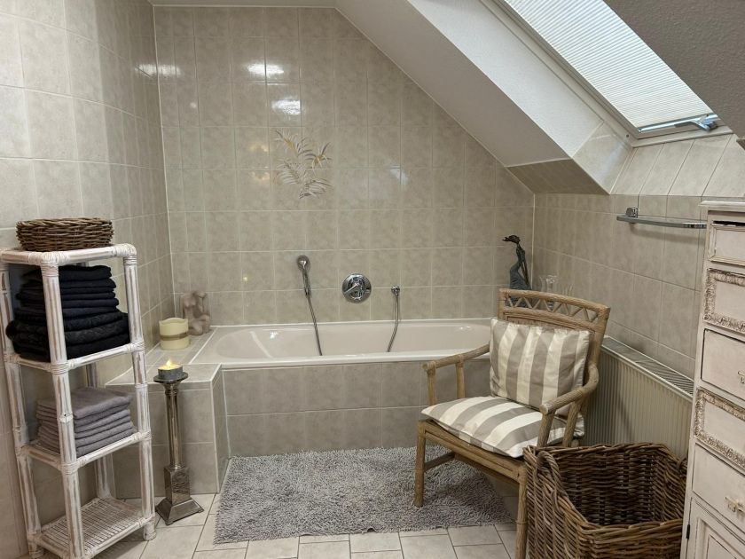 In den Bädern finden sich Handtücher in ausreichender Menge, Föhn und Duschhocker sowie in einem Bad ein Waschtrockner.