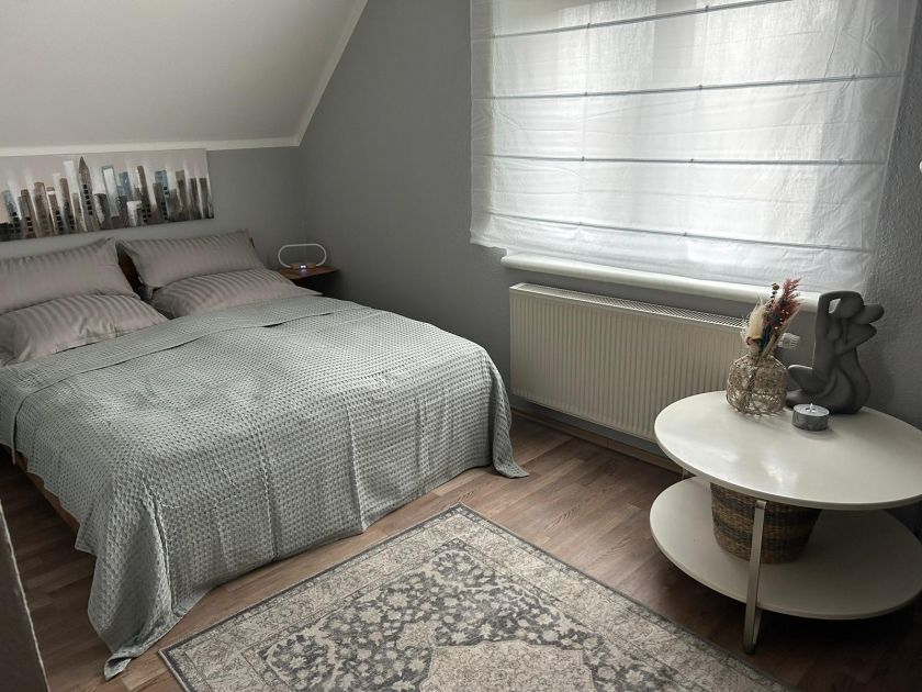 Es handelt sich um eine ca. 140 qm große Nichtraucherwohnung auf zwei Ebenen, bestehend aus 4 Doppelschlafzimmern, einer voll ausgestatteten Einbauküche, 2 Bädern, großem Wohn-/Essbereich und möbliertem Balkon (hier darf geraucht werden).