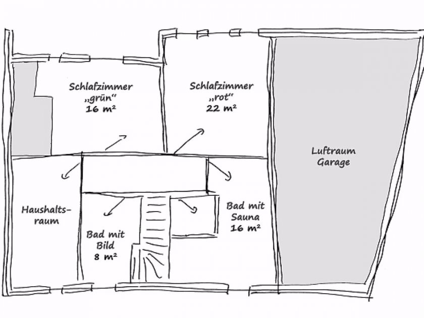 Betreten Sie nun unser großes Wellness-Bad im Obergeschoss.