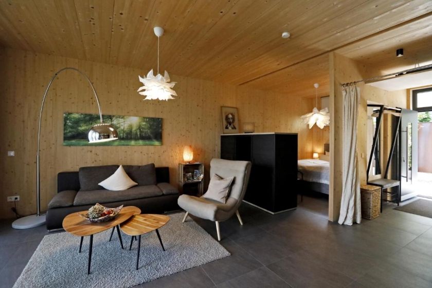 • Nach ausgedehnten Wanderungen im Pfälzer Wald finden unsere Gäste in den naturbelassenen Holzinnenräumen eine wohlige Atmosphäre.