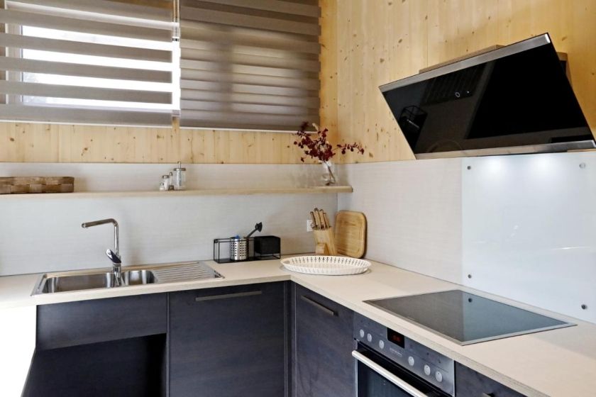 Geeignet für eine Familie mit zwei Kindern. Das Stockbett hat eine Größe von 90×200 cm. Ein Baby-Reisebett mit Hochstuhl steht auf Anfrage ebenfalls zur Verfügung.