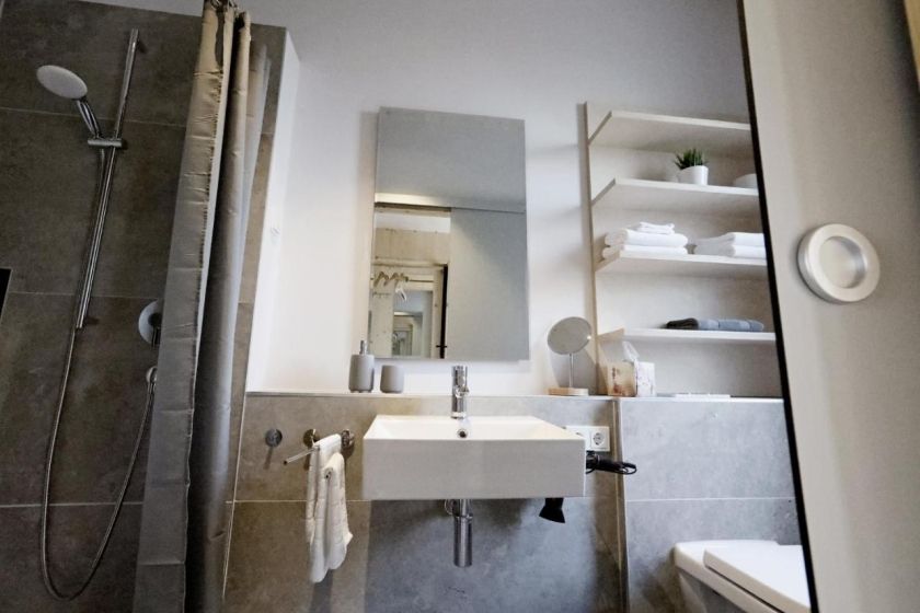 Das gesamte Appartement ist mit Schiebetüren ausgestattet, so dass alle Bereiche mühelos auch mit Rollator oder Rollstuhl erreicht werden können. Individuelle Einschränkungen und daraus resultierender Bedarf sollte bitter vorher mit uns besprochen werden.