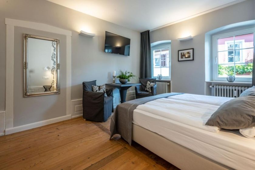 Keines unserer Zimmer ist wie das andere! Die individuellen Zimmer sind mit viel Liebe zum Detail eingerichtet. Funktionale und modernste Ausstattung trifft auf charmante Design-Details. Alle Zimmer verfügen über Satelliten-/Flachbild-TV, Heizung, Holz-/Parkettboden, Schrank, Queen- bzw. Kingsize Bett, Bettwäsche. Des Weiteren verfügen die meisten Zimmer über eine Aufzugsanbindung und ein barrierefreies Bad.