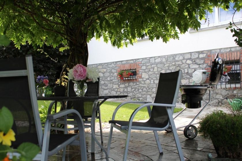 - Im Außenbereich erwarten Sie ein gepflegter Garten mit Grillmöglichkeiten und eine Terrasse mit herrlichem Bergblick. Für Entspannung sorgt die hauseigene Sauna.