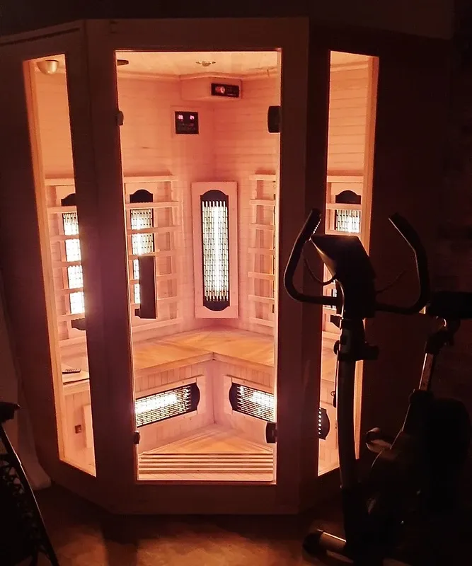 - Weitere Ausstattung: Infrarot-Sauna im Garten (Saunahütte), 1 Trimmrad und Stepper (Saunahütte).