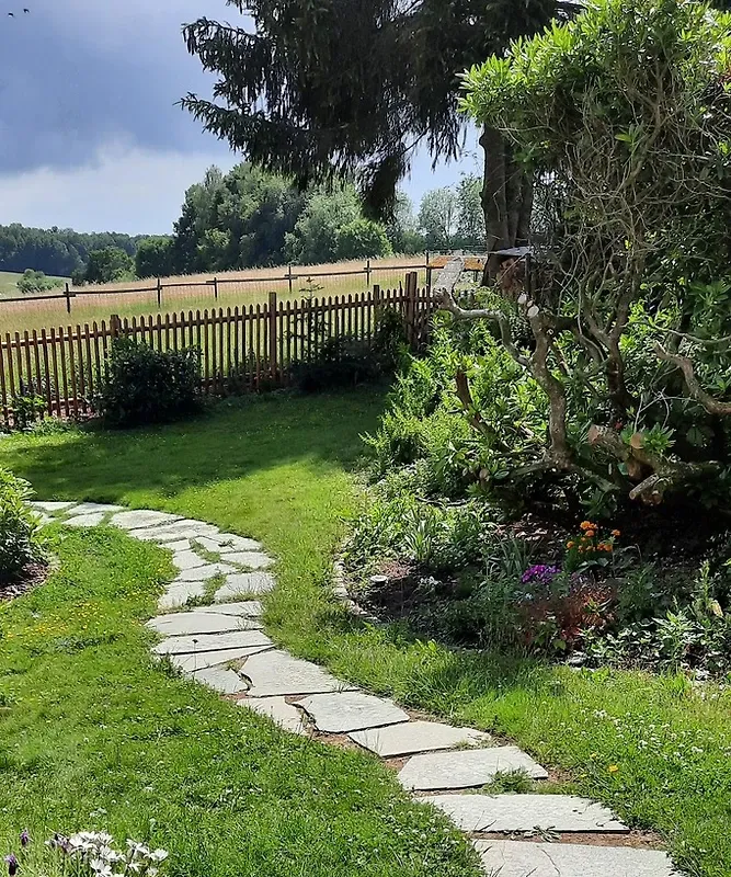 - Grundstück und Garten: 600 m² Grundstück, komplett eingezäunt mit einem ca. 1,25 m Zaun und einer zusätzlichen 1,50 m hohen Hecke als Sichtschutz, 1 PKW Stellplatz vor der Garage, Balkon, Terrasse, 8 Gartenstühle, 2 Liegestühle, Grill, Garage, Garten grenzt an große Wiese mit 5 Zwergziegen, Markise, Schaukel, kleiner Gartenteich.