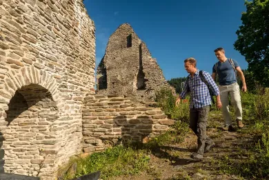 - Von der ursprünglichen Anlage sind noch Teile der Ringmauer, Reste des Bergfrieds und Wohngebäude erhalten. Tafeln auf dem Gelände erklären die Bauweise und Geschichte. Der Aufstieg wird mit einem beeindruckenden Panoramablick über das Sayntal belohnt.