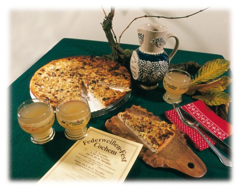 Mit dem Federweißenfest in Cochem geht die Weinfest Saison dem Ende zu Zum Abschluß erwartet die Besucher Musik von Pop bis Schlager, Zwiebelkuchen, edle Weine sowie die an der Mosel traditionell ausgelassene Stimmung.